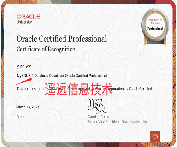一种是管理方向,叫:Oracle Certified Professional, MySQL 8.0 Database Administrator(我考试的比较早,这张证书图是老版本的)
