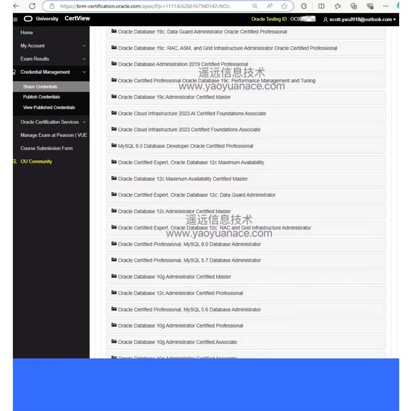 目前号主在certview.oracle.com网站上的证书清单截图