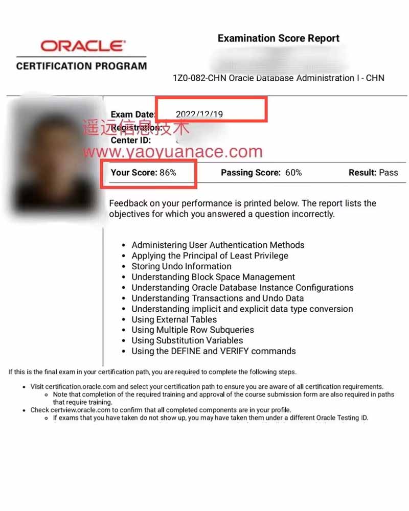 下一条 : Oracle19c成绩082-(85分)Oracle OCP 19c 认证1Z0-083考试题库